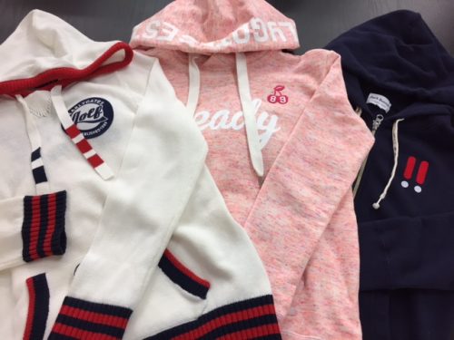 ニットパーカーに、スウェットパーカー、フルジップパーカー、どれもカジュアルで普段着として着てもおしゃれなウェアです。