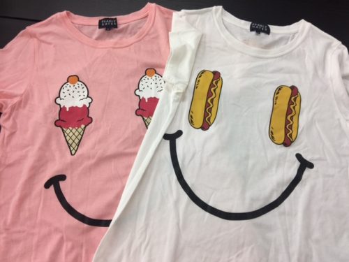 スマイルのひとみが可愛いアイスクリーム柄とホットドック柄になったデザインプリントTシャツです!